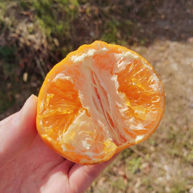 (写真は温州ミカンのを使用しております) 注: ☆みかんのサイズはバラです。ご注文前にご了承ご理解の上、ご注文下さい。 ☆ほぼ自然な栽培となっておりまして、みかんの見た目、キズが多かったり致しますが、ご了承下さい。輸送中に2-5個潰れている場合もありますが、返却・交換は不可です。 ☆天気と収穫によりますが、数に限りありますがご了承下さい。 (タイミングにより、同じみかん1種類だけになる場合もありますのでご了承下さい) みかんを味見して、 収穫できそうな旬なみかんを詰め合わせさせて頂きます お任せセット 約4.5キロ ジューシーで果汁いっぱいみかんです! そして、後味が消えていくような美味しさ! 食べ過ぎご注意です。 愛媛県宇和島市のみかん農家です。 除草剤もしない畑で草刈りしてもしても雑草の成長には追い付かないです(-_-;) 農薬をいれないように、年中草刈りです。 みかんシーズンになりドタバタしておりますので、ご注文後順次ご発送させて頂きます。 お時間いただきます場合もありますので、ご了承下さい。